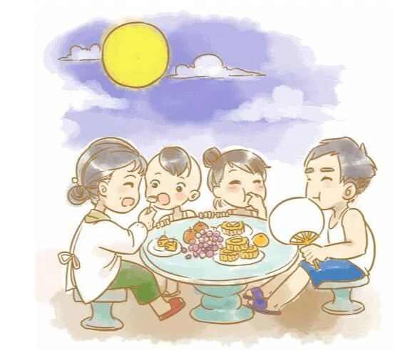 家人團坐,分吃月餅,共賞明月
